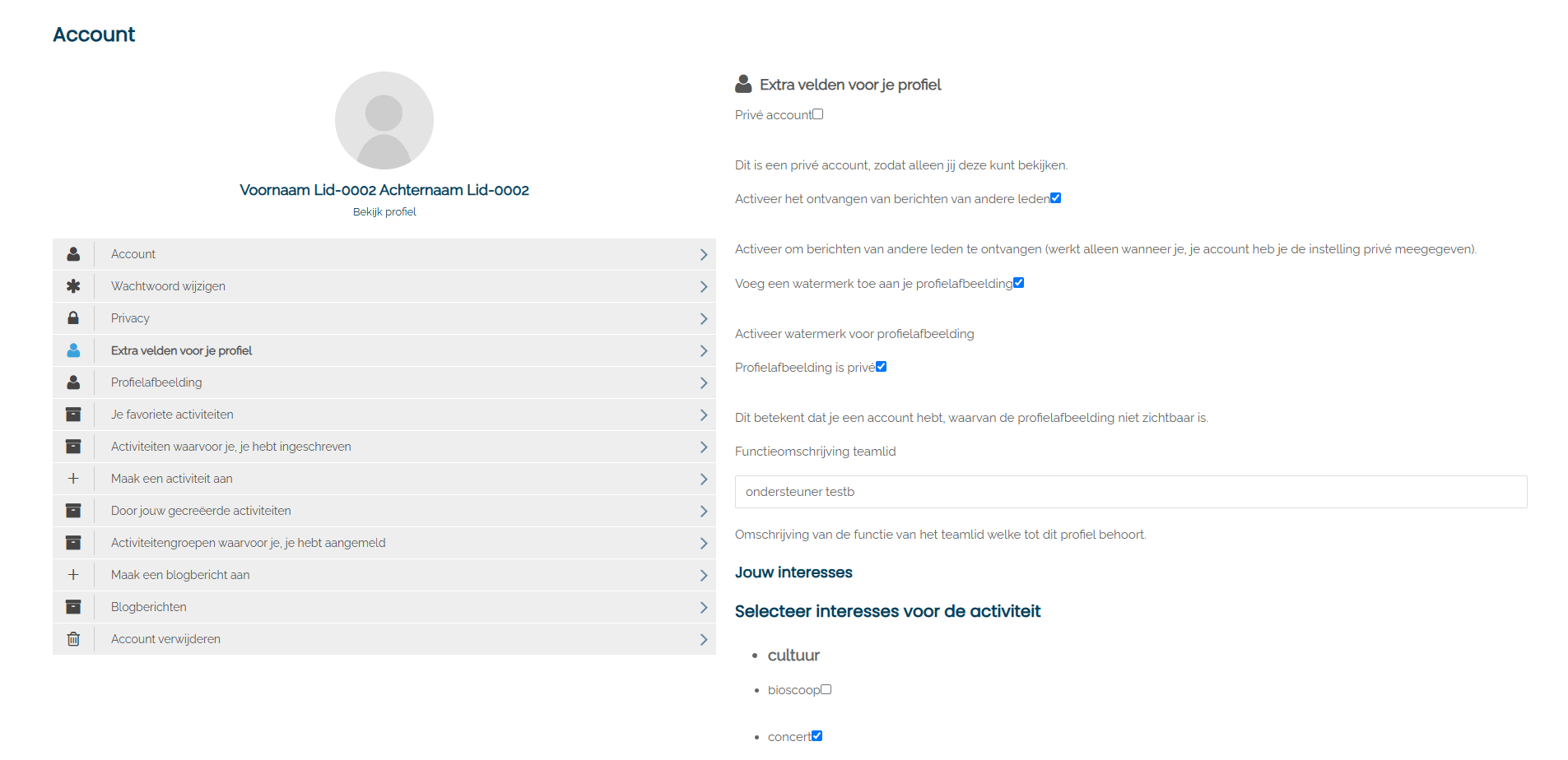Vul op de account pagina, in de tab “Extra velden voor je profiel” je extra profielgegevens in.