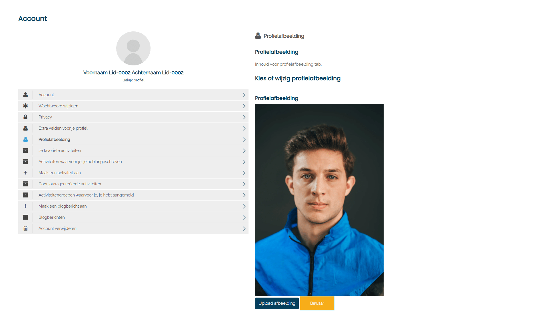 Maak eventueel je profiel compleet, door op de account pagina, in de tab “Profielafbeelding” een foto van jezelf te plaatsen. Deze foto is alleen zichtbaar voor leden.