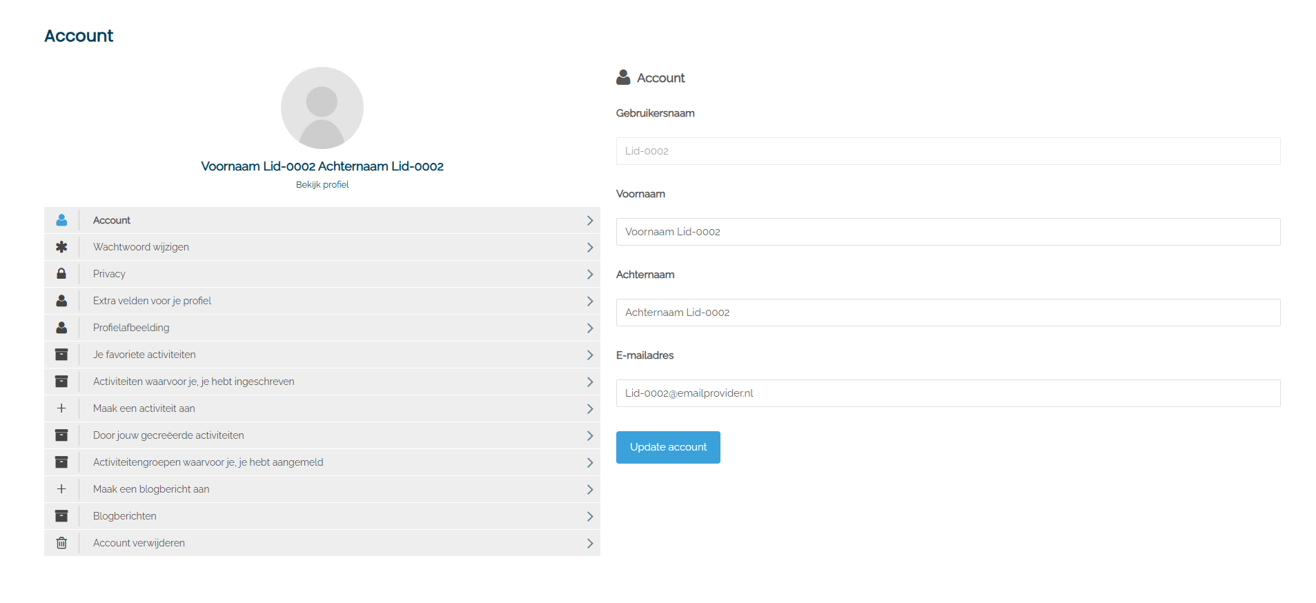 De account pagina is alleen bereikbaar voor (ingelogde) leden