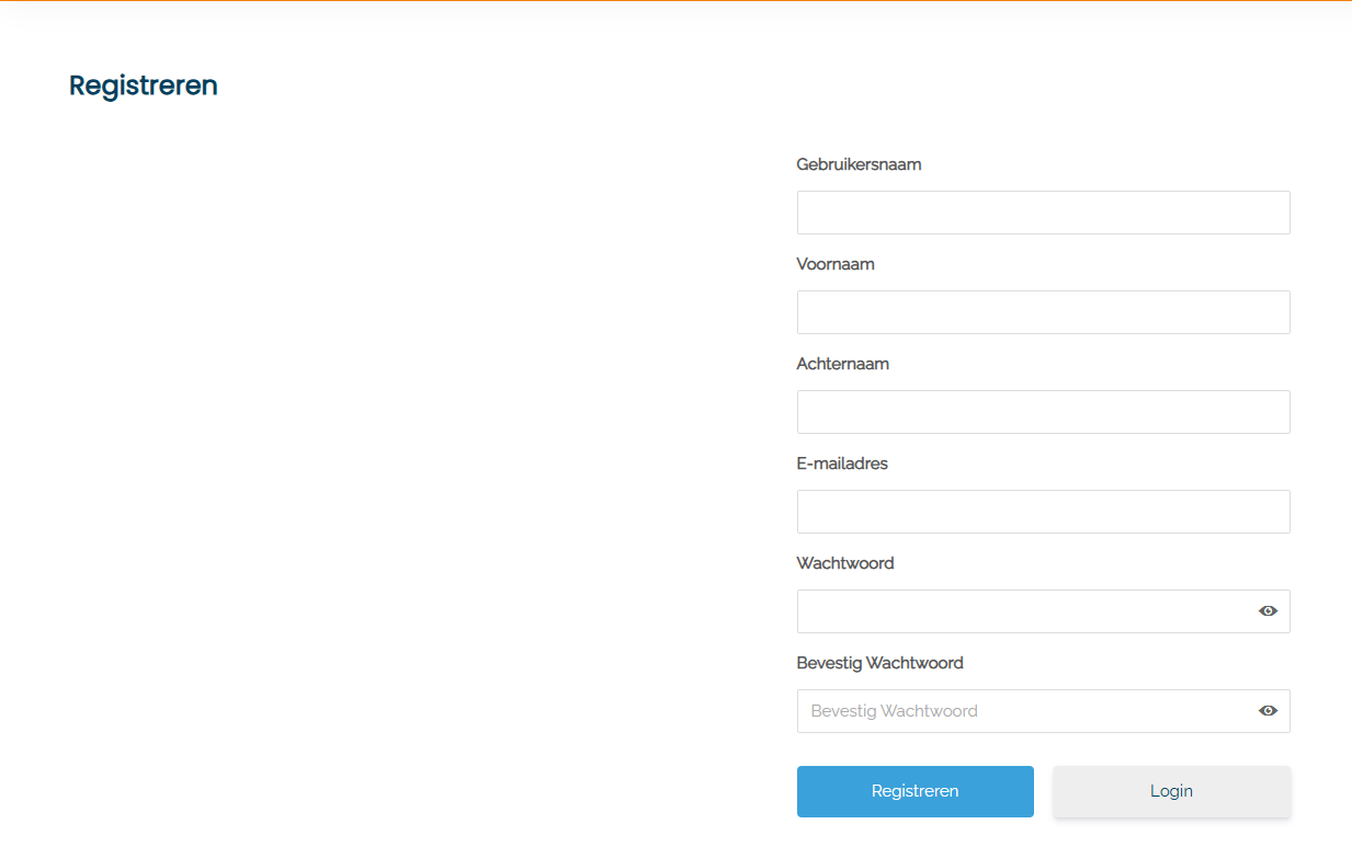 Klik op in het menu bovenaan de pagina op ‘Registreren’ en volg de volgende stappen stappen: